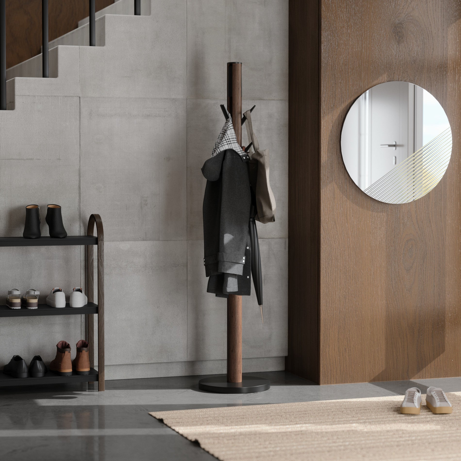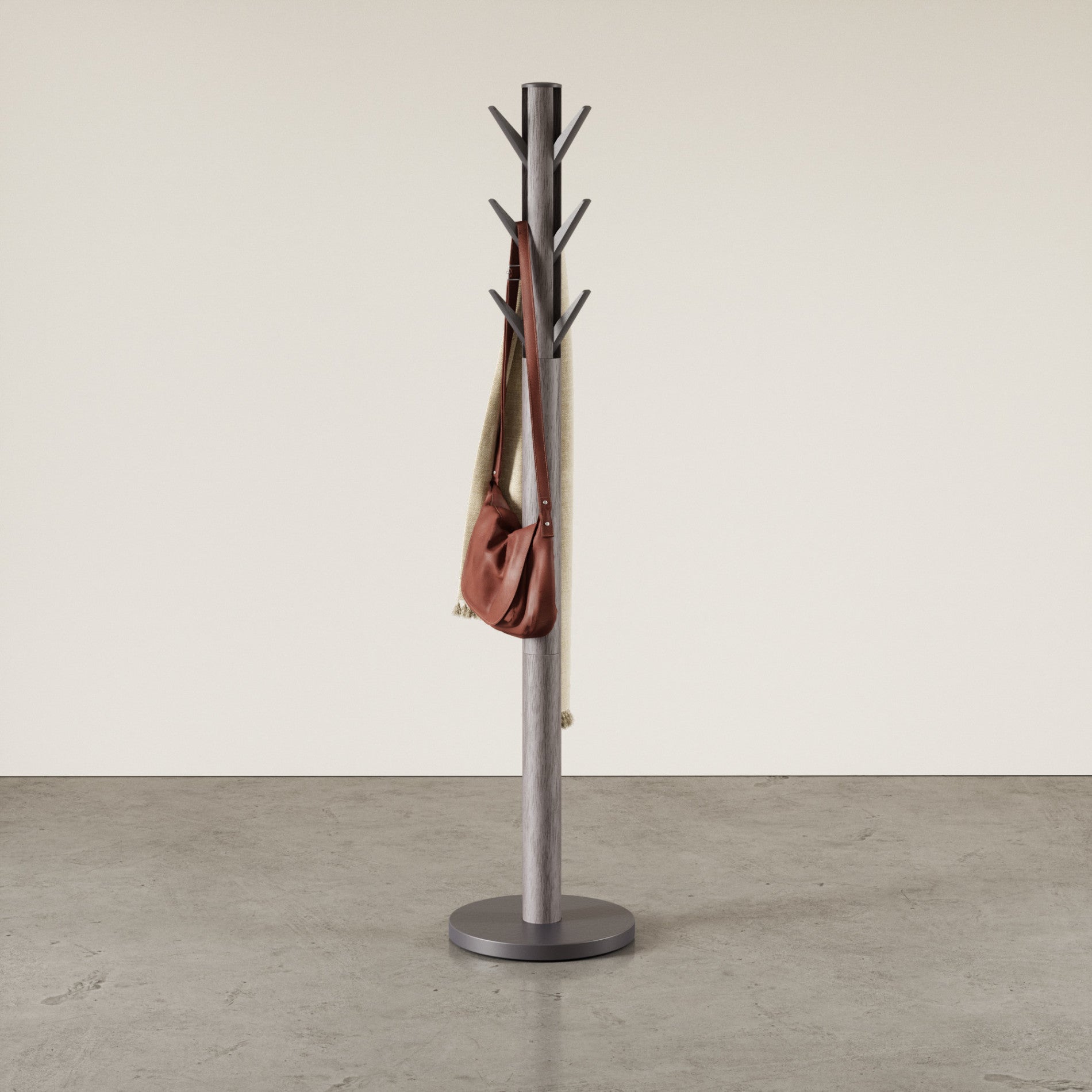 This wooden coat rack stands tall and sleek with nine flip-down hooks, offering ample storage with the ability to tuck away when not in use. Made of wood, Flapper has a tree-like aesthetic, while being entirely modern. Available in a variety of modern finishes, Flapper is sleek in design while keeping ample utility. Measures 15.63 x 15.63 x 66 inches (40 x 40 x 168 cm). Sourced from renewable wood sources. Wood is a unique natural material with variations in tone, texture, and grain.